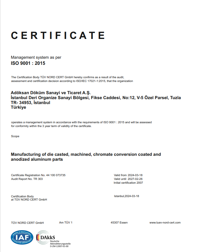 Both Adöksan plants are already certified according to IATF 16949, ISO 9001, ISO 14001, ISO 45001 and ISO 27001.